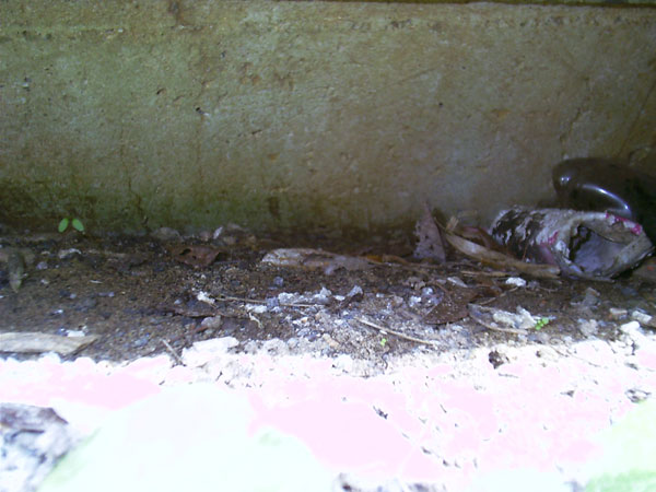 Blick in die Öffnung. Sie ist verfüllt. Wir gehen momentan davon aus, dass der ganze Graben verfüllt wurde. Eindeutig ist die diagonal nach unten laufende Deckenbetonschalung der Öffnung zu erkennen!