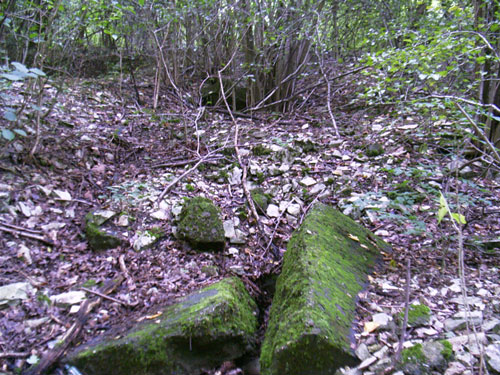 In der Nähe des Stollens befinden sich die Reste eines betonierten Deckungsgrabens Höhe Bröckerweg: