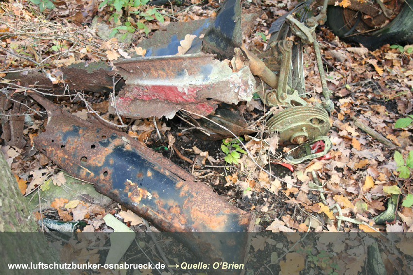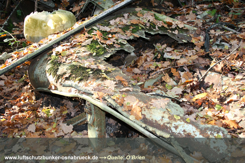 Reste eines VW-Käfers an vermutetem Bunkerstandort im Hüggel